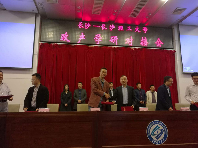 為進(jìn)一步加強(qiáng)長(zhǎng)沙與高校的科技合作交流,加快高校的科技成果在長(zhǎng)轉(zhuǎn)化,10月13日上午,“長(zhǎng)沙-長(zhǎng)沙理工大學(xué)政產(chǎn)學(xué)研對(duì)接活動(dòng)”在長(zhǎng)沙理工大學(xué)云塘校區(qū)舉行。圖為我公司與長(zhǎng)沙理工大學(xué)簽署對(duì)接協(xié)議。