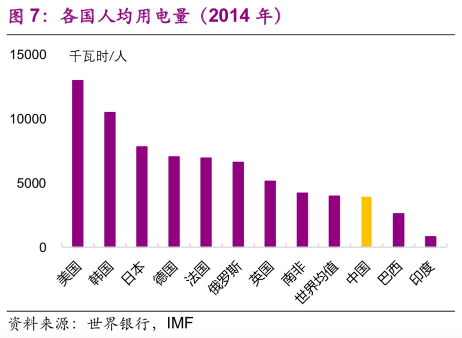 人均用電量則有所差異,部分西部資源輸出省份較高。排名前三的是寧夏(1.3萬千瓦時(shí)/人)、青海(1.1萬千瓦時(shí)/人)、內(nèi)蒙古(1.0萬千瓦時(shí)/人)(圖37),而世界均值為0.4萬千瓦時(shí)/人。